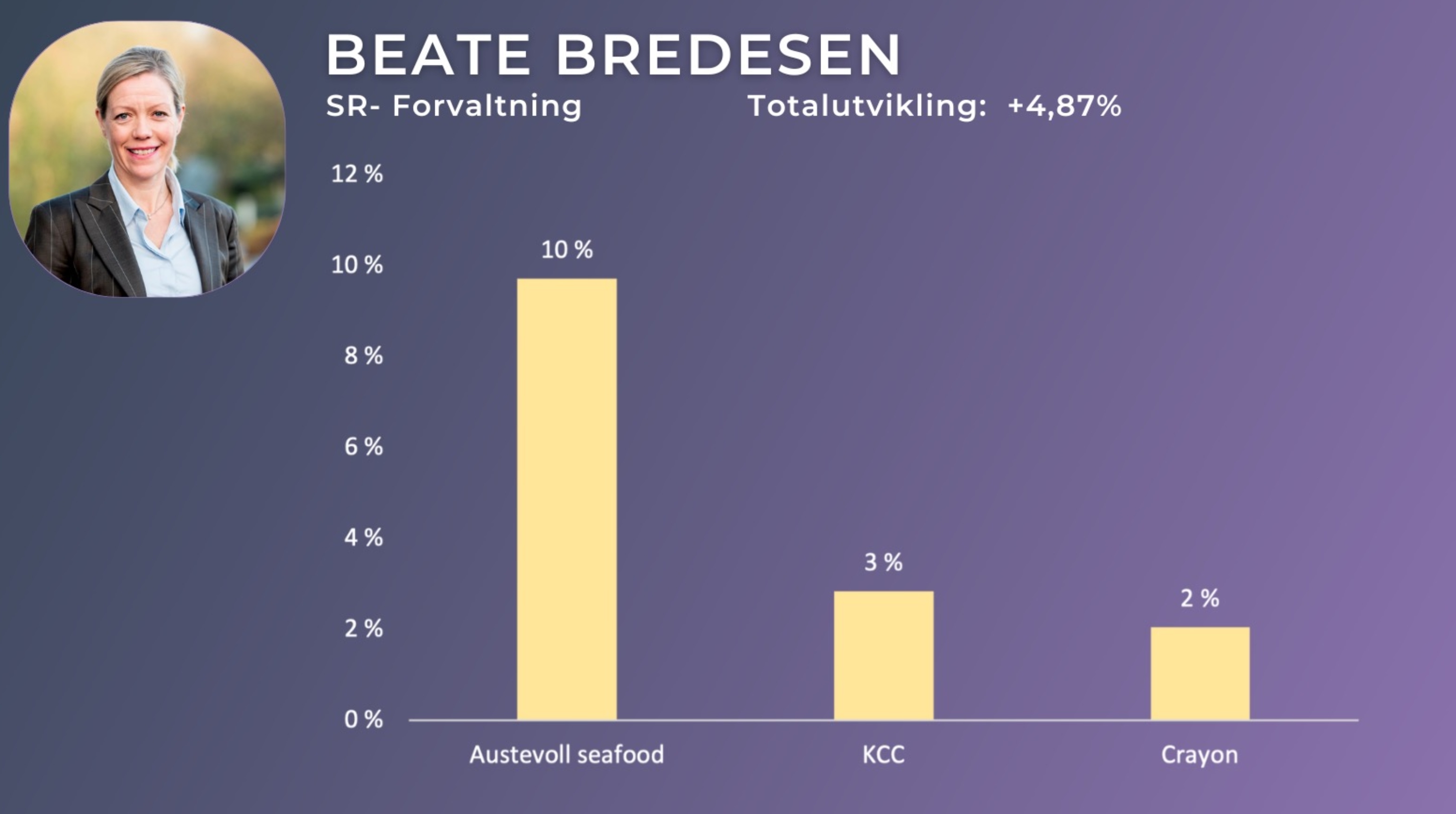 - Beate Bredesen: + 4,87 prosent