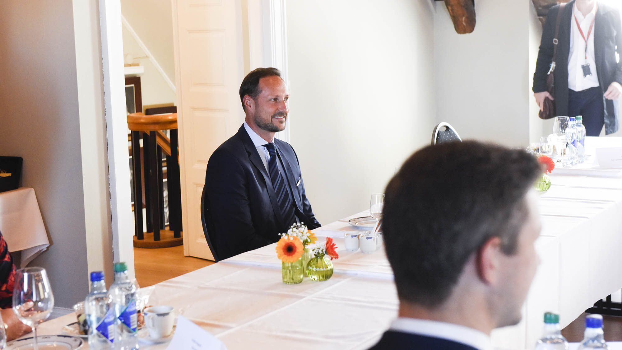 – At vi i Norge knapt har skille mellom arbeiderne på gulvet og ledelsen har vært avgjørende, mener mange. Det er godt å høre at den norske modellen her fungerer godt i en slik krisesituasjon, sa Kronprinsen.